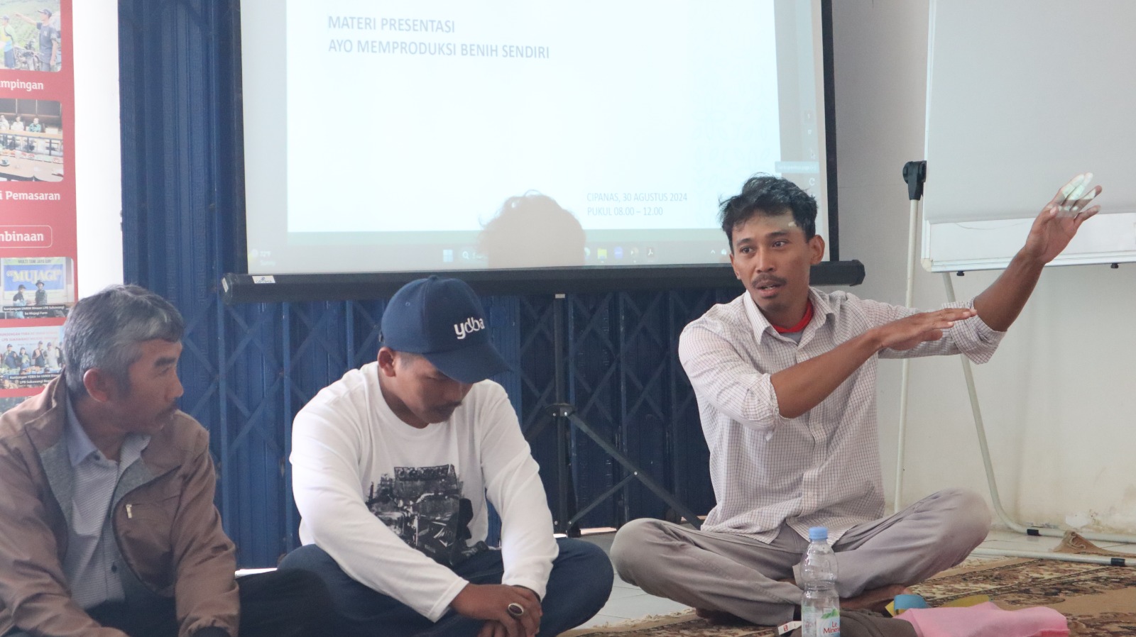 Bogor 30 Agustus 2024, Tim PT Bukitmas Agritech International memberikan pelatihan teknik penangkaran benih kepada petani binaan Yayasan Dharma Bhakti Astra (YDBA), di kantor Lembaga Pengembangan Bisnis (LBP) Sukawangi Majeng Sareng yang berlokasi di Kampung Arca, Sukawangi, Kecamatan Sukamakmur, Kabupaten Bogor , Jawa Barat.